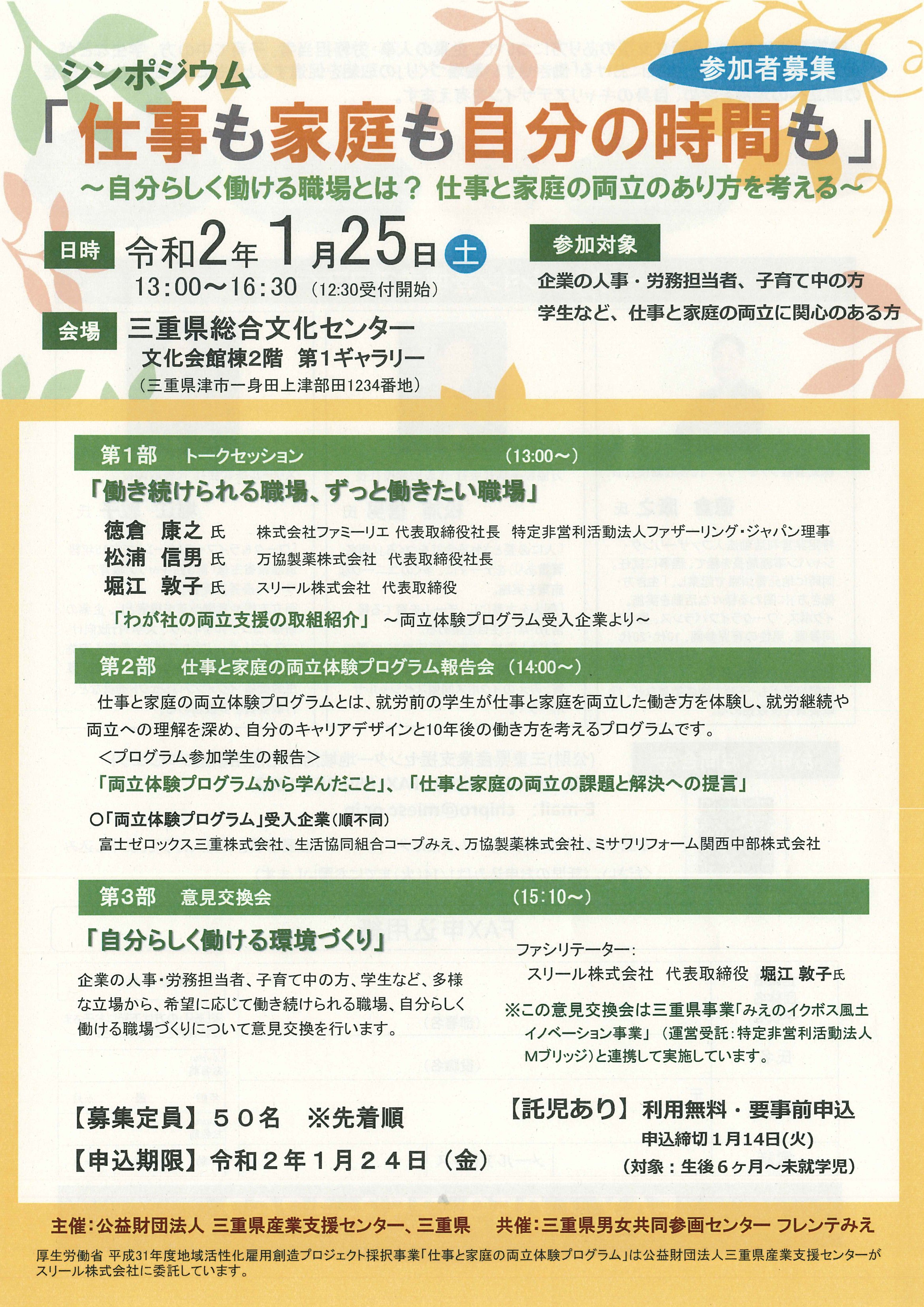 シンポジウム「仕事も家庭も自分の時間も」~自分らしく働ける職場とは?仕事と家庭の両立のあり方を考える~