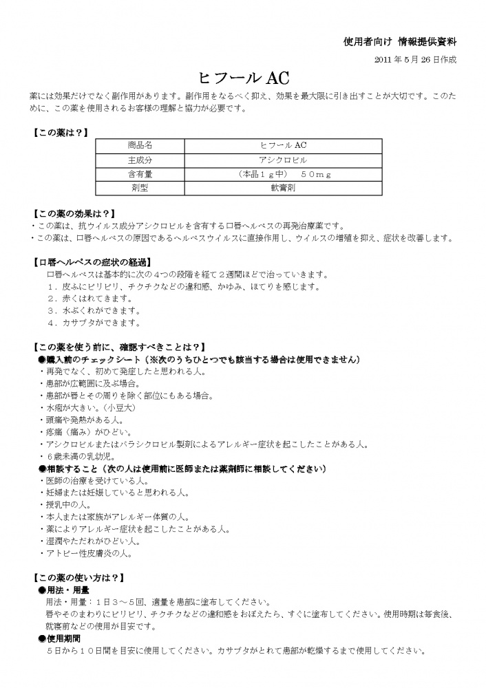 ヒフールACの情報提供になります。ご使用前にお読みください。