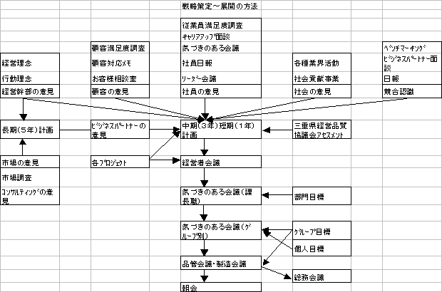 「一人の人間の考え方に共感して自分もその輪に加わりたいと思い積極的になっていく」弊社はこの現象こそがすべての会社の原点であるべきと言い切っています。小さな会社が、日本を変えることは難しいかもしれません。しかし、せめて自らの関係する内外の組織はこの思いを伝えていきたいと弊社では常に考えています。会社のみんなと共に人生を考える会社、それこそが従業員が誇りを持てる中小企業の本来の姿ではないかと考えています。2005年度弊社の受賞した三重県経営品質賞奨励賞の授賞式での従業員の誇らしげな顔を見るとき、やはり他社から賞賛される立場になることがいかに重要であるかということを全員が実感しました。